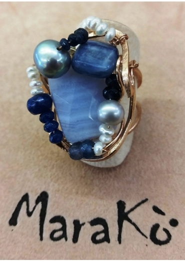 Anello calcedonio, agata zaffiro, perle di fiume – cod:AN294