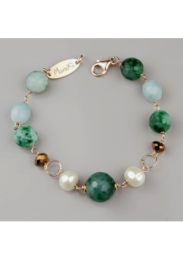 Bracciale Acquamarina, agata striata verde, perle br0635